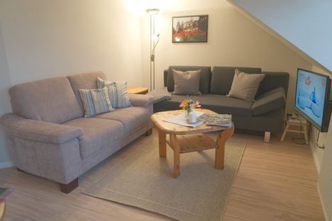Die Wohnung verfügt über ein Schlafzimmer mit Doppelbett und für ein weiteres Kind (bis ca. 15 Jahre) ist unser Schlafsofa geeignet.